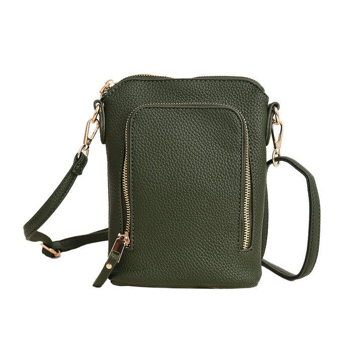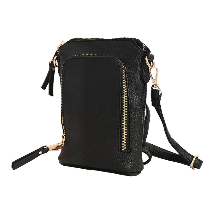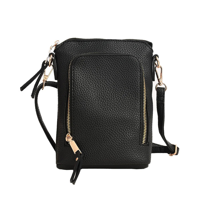Faux Leather Bag with Gold-Tone Hardware. This stylish and functional crossbody bag is crafted for convenience and everyday elegance. Designed to fit all regular and plus-size iPhones, it’s a customer favorite for a reason!