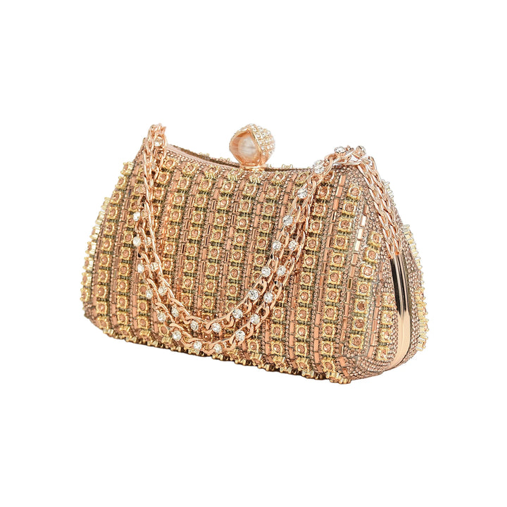 Elevate your evening ensemble with this sophisticated golden clutch, meticulously crafted to capture and reflect light with understated elegance. The radiant finish creates a luminous quality that complements formal wear without overwhelming your look. Designed with expert attention to detail, this fancy clutch features a refined silhouette perfect for galas, weddings, and upscale events. Its compact yet functional interior accommodates essentials while maintaining a sleek profile. The premium construction ensures durability through countless occasions, making it an investment piece that transcends seasonal trends. A timeless accessory for the discerning individual who values both style and substance.